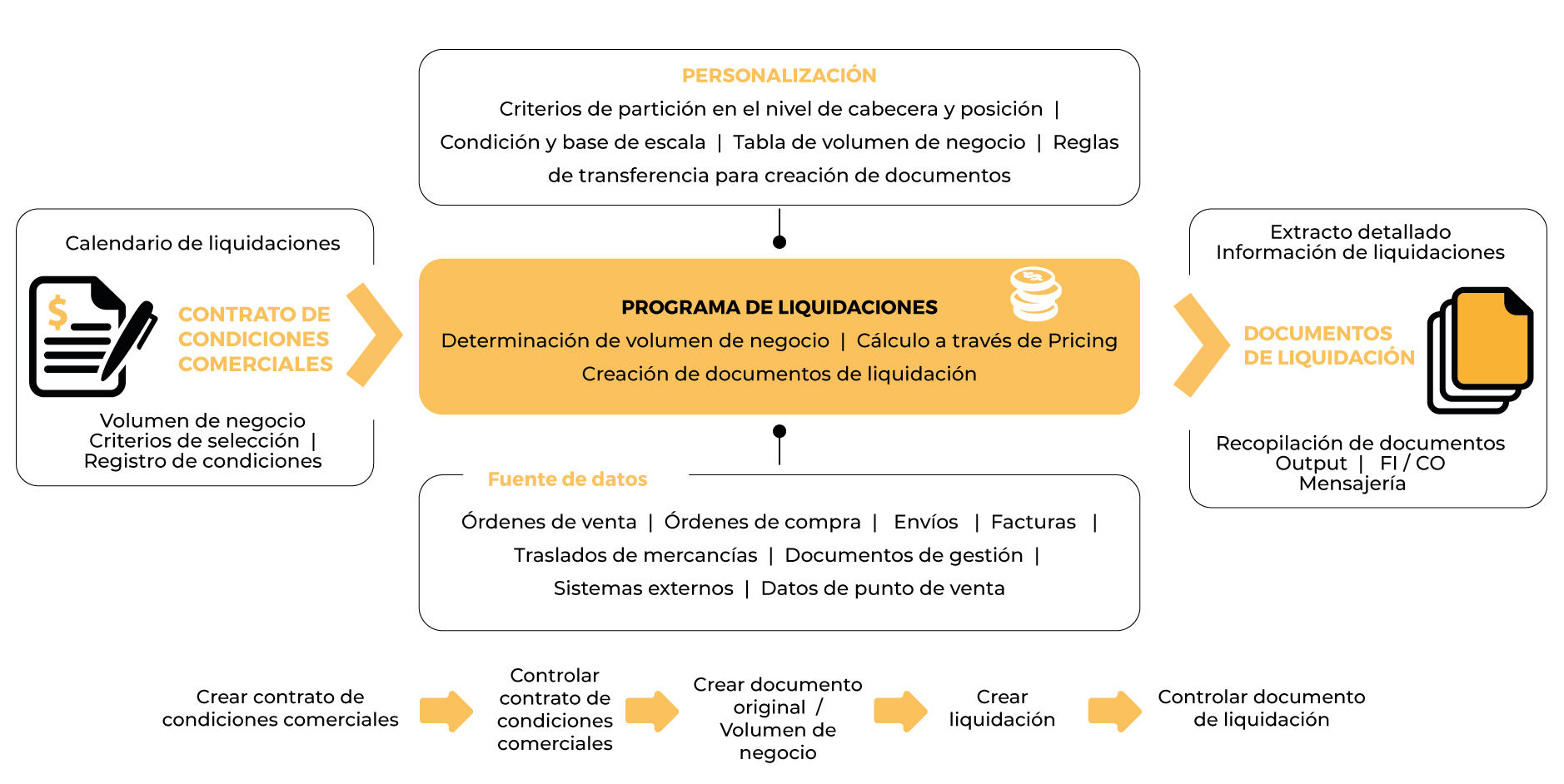 Completamente nuevo, sustituye al tratamiento de gestión de acuerdos comerciales de SD y MM: SAP S/4HANA Settlement Management utiliza Central Contract Administration (administración central de contratos) como único punto de entrada para datos de contratos y condiciones contractuales para: